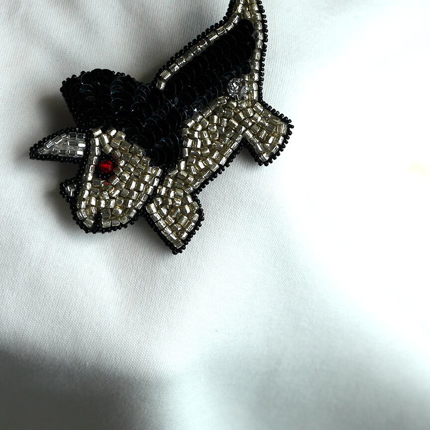 頭の部分は2色のスパンコールを使い、立体感を出しています。