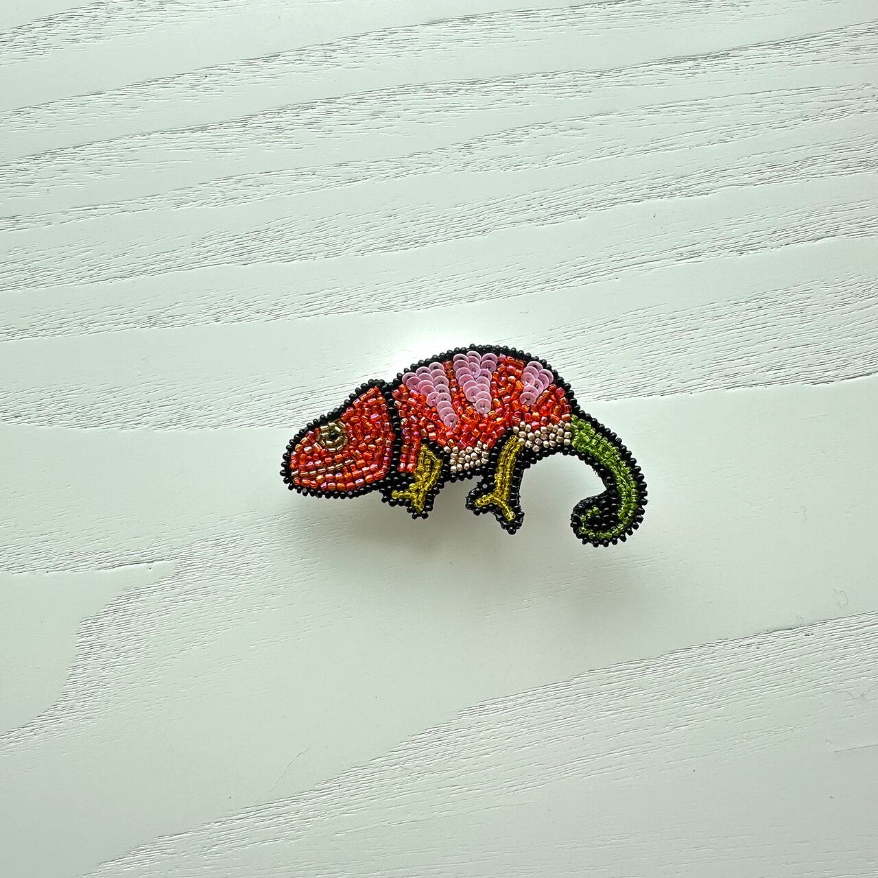 カラフルなカメレオンのブローチです。