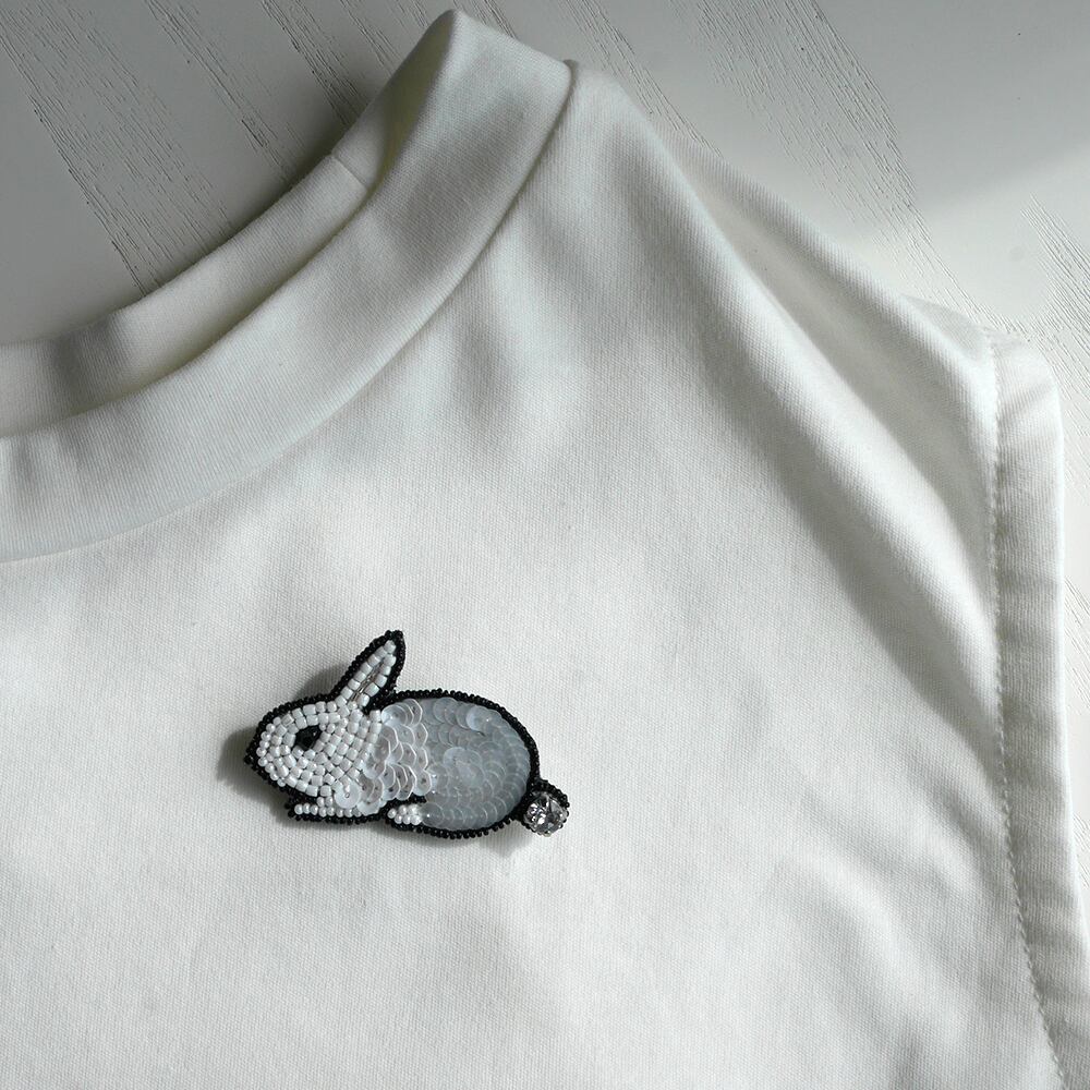 ウサギ/Rabbit ブローチ White Black eye