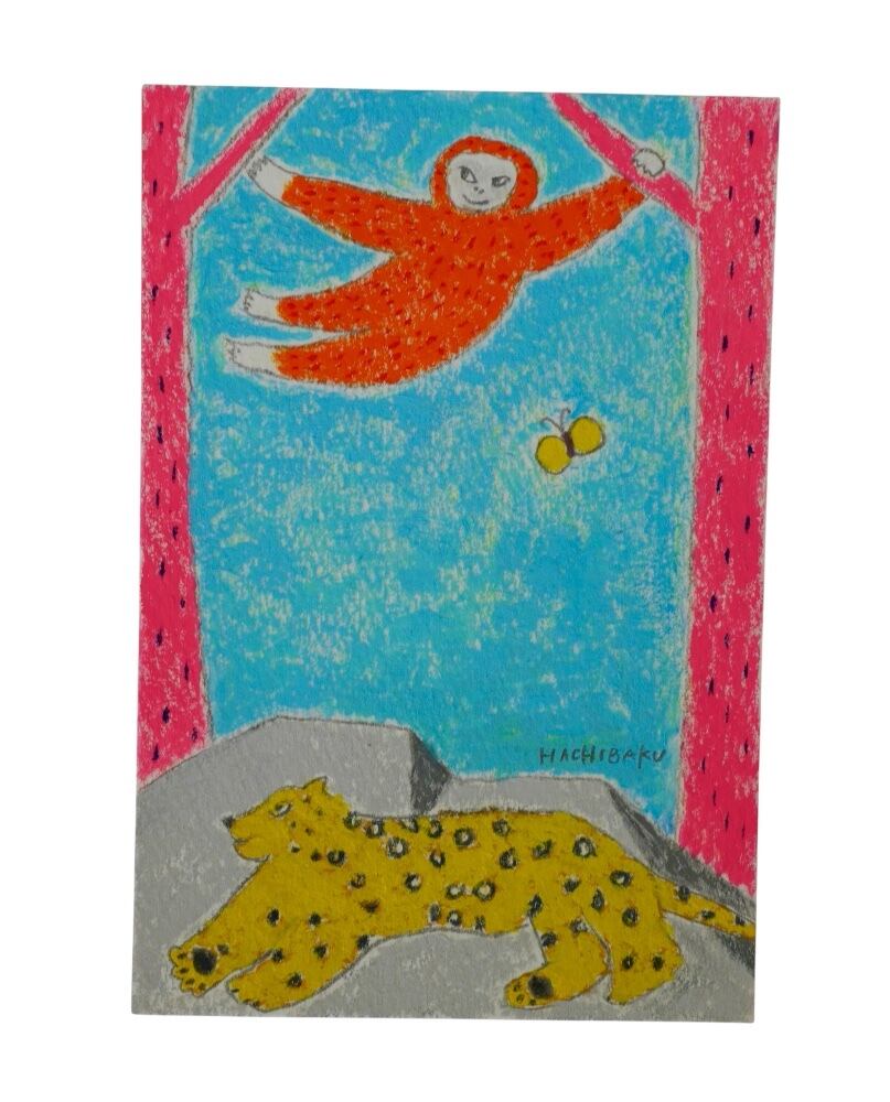 ポストカード/シロテナガザルとヒョウ