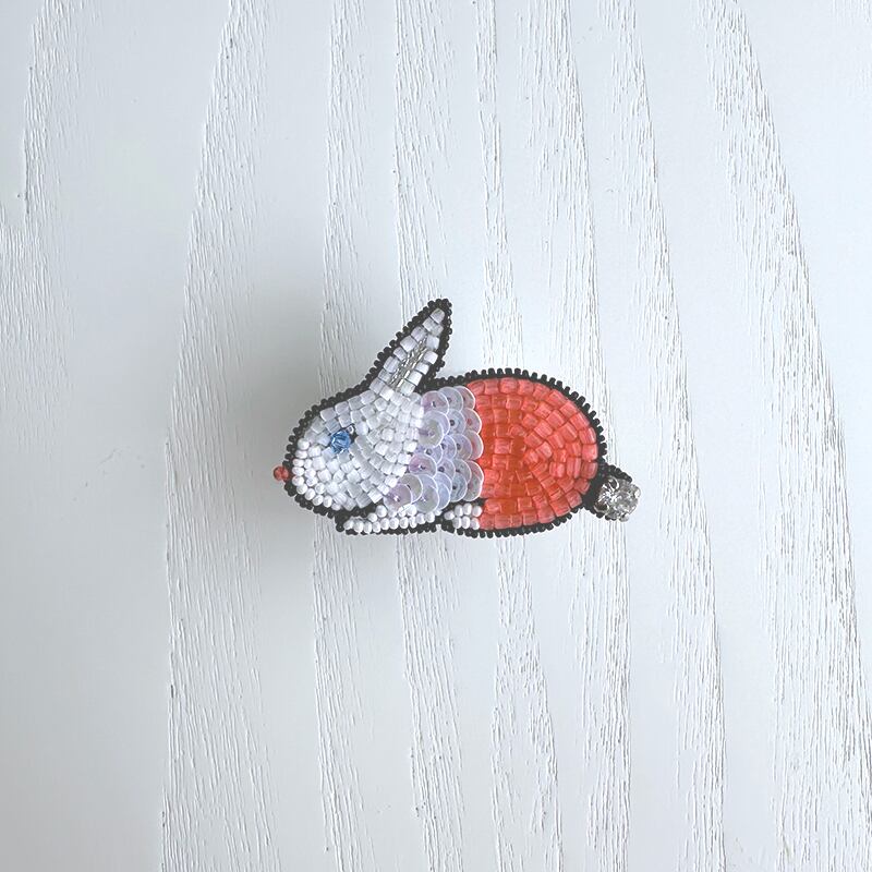 ウサギ/Rabbit ブローチ White & Fresh Pink