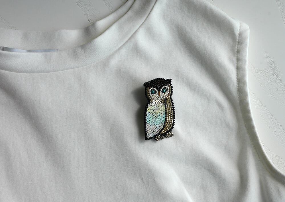 羽の部分は虹彩加工のフランス製スパンコールを3色、