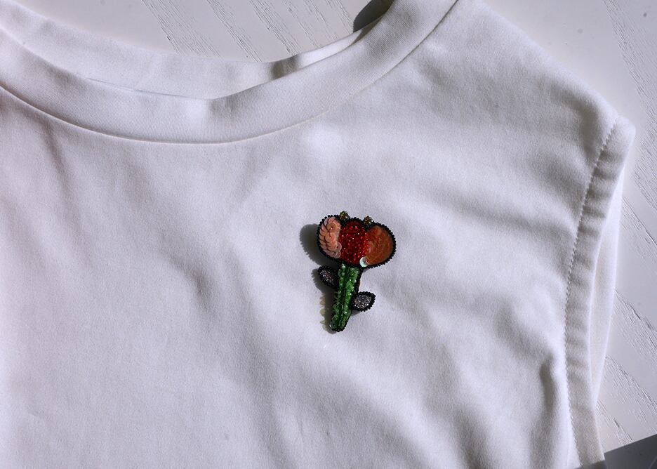 一針一針丁寧に刺しており、制作時の楽しい気分を大切にし、