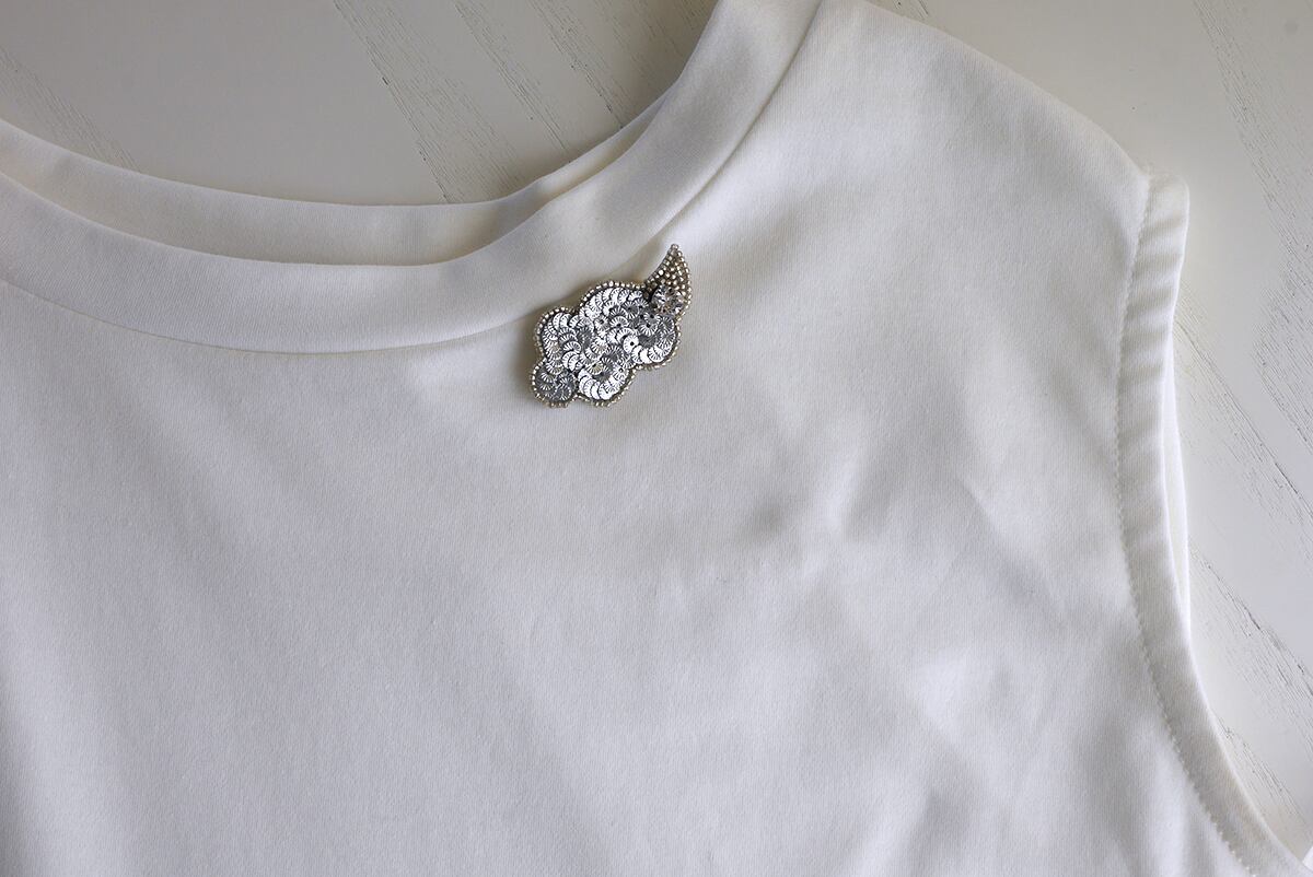 シルバーのビーズとシルバーのスパンコールの組み合わせ。