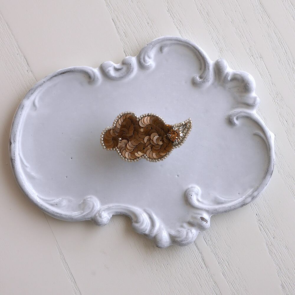ゴールドorシルバーのビーズとマロンブラウンのスパンコールの組み合わせです。