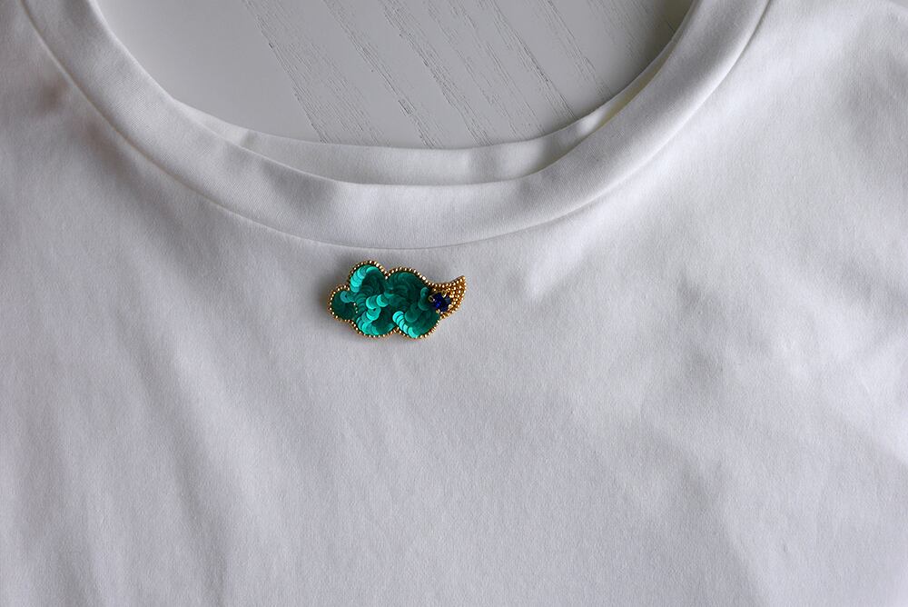 ずっと眺めていられますとのお声をよくいただくHACHIBAKU(ハチバク)のブローチ。光を受けるとキラっと輝くカットが施されているチェコ製ビーズ、つや感が美しいフランス製スパンコールなど、美しく仕上がるよう素材から厳選して作っています。