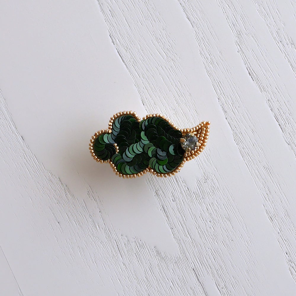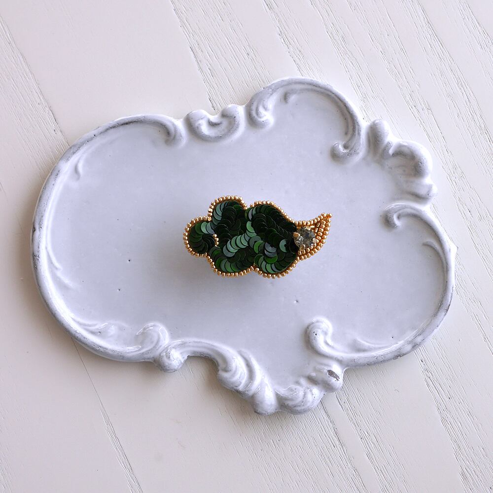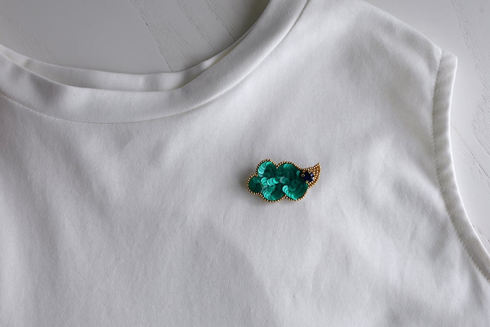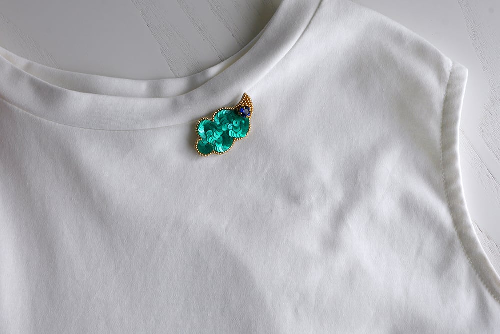 ずっと眺めていられますとのお声をよくいただくHACHIBAKU(ハチバク)のブローチ。光を受けるとキラっと輝くカットが施されているチェコ製ビーズ、つや感が美しいフランス製スパンコールなど、美しく仕上がるよう素材から厳選して作っています。