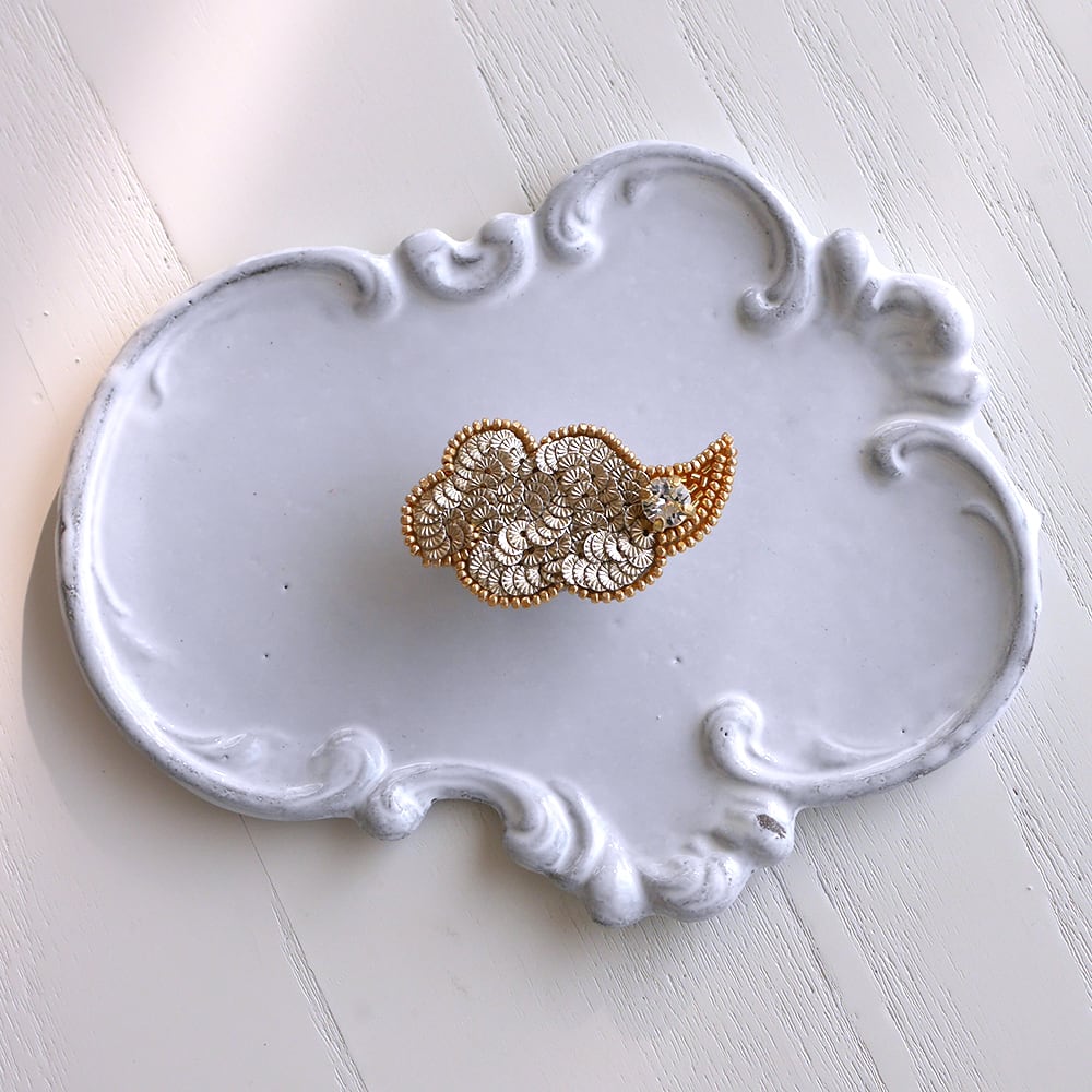 ずっと眺めていられますとのお声をよくいただくHACHIBAKU(ハチバク)のブローチ。光を受けるとキラっと輝くカットが施されているチェコ製ビーズ、つや感が美しいフランス製スパンコールなど、美しく仕上がるよう素材から厳選して作っています。